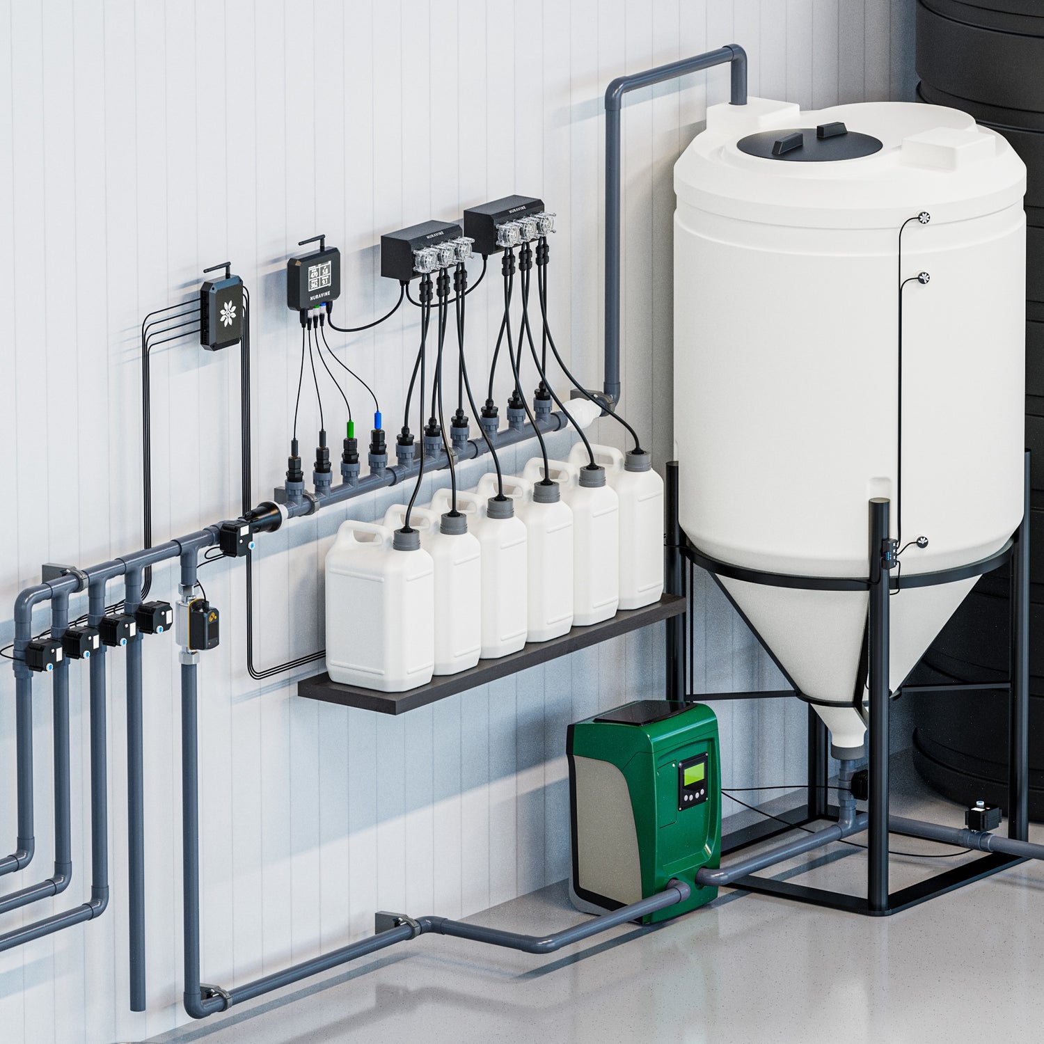 The Flux enables sharing resources with other Flux and Aurora devices. For example, you can open a valve on one Flux, use the Aurora to dose nutrients, then deliver through a valve on a different Flux.