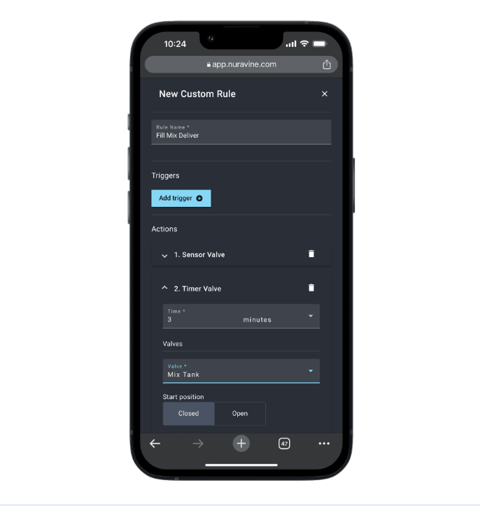 Flux brings the Nuravine 2.0 platform to life, offering unparalleled customization in hardware and software. It can tackle any logic problem with sensors and valves, providing unrivaled control, whether used alone or with our dosing systems.