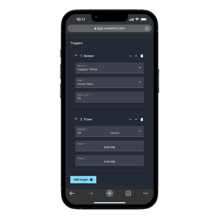 Triggers can be sensor readings or timed events that activate automations, you can even have multiple triggers at the same time like if it's 8pm and the temperature is above 75 turn on your chiller.